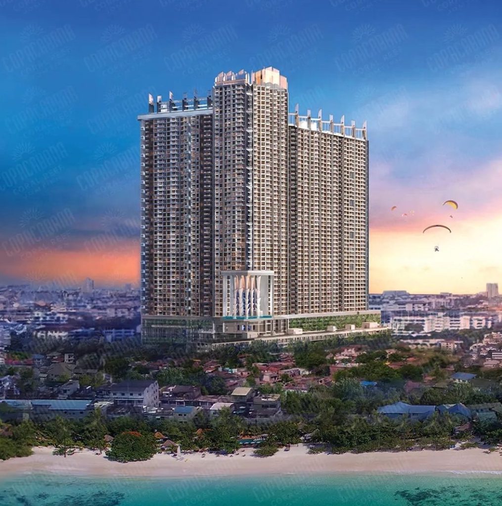 Beachfront luxury in Jomtien: spacious 1-, 2- and 3-bedroom condo units with rooftop infinity pools, sea-view gym, sky park & wave pool — live the coastal resort lifestyle just steps from the beach.