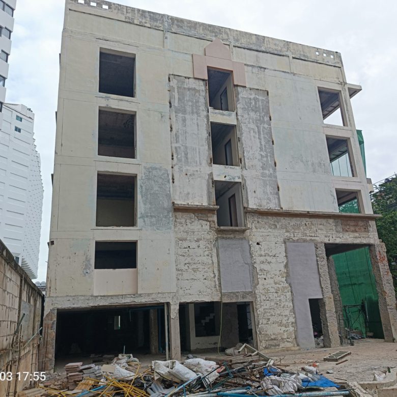 This hotel building for sale in Jomtien Soi 1 is a high-potential opportunity located just 150 meters from the beach. Featuring 35 rooms, a private pool, elevator, rooftop bar space, and lobby, this property is undergoing renovations and offers huge value for developers or hospitality investors.
